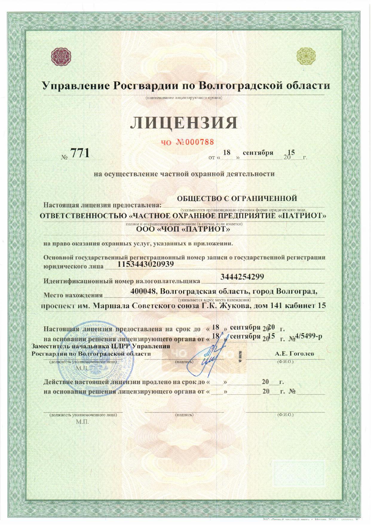 Лицензия на осуществление частной охранной деятельности (ЧОП Патриот)