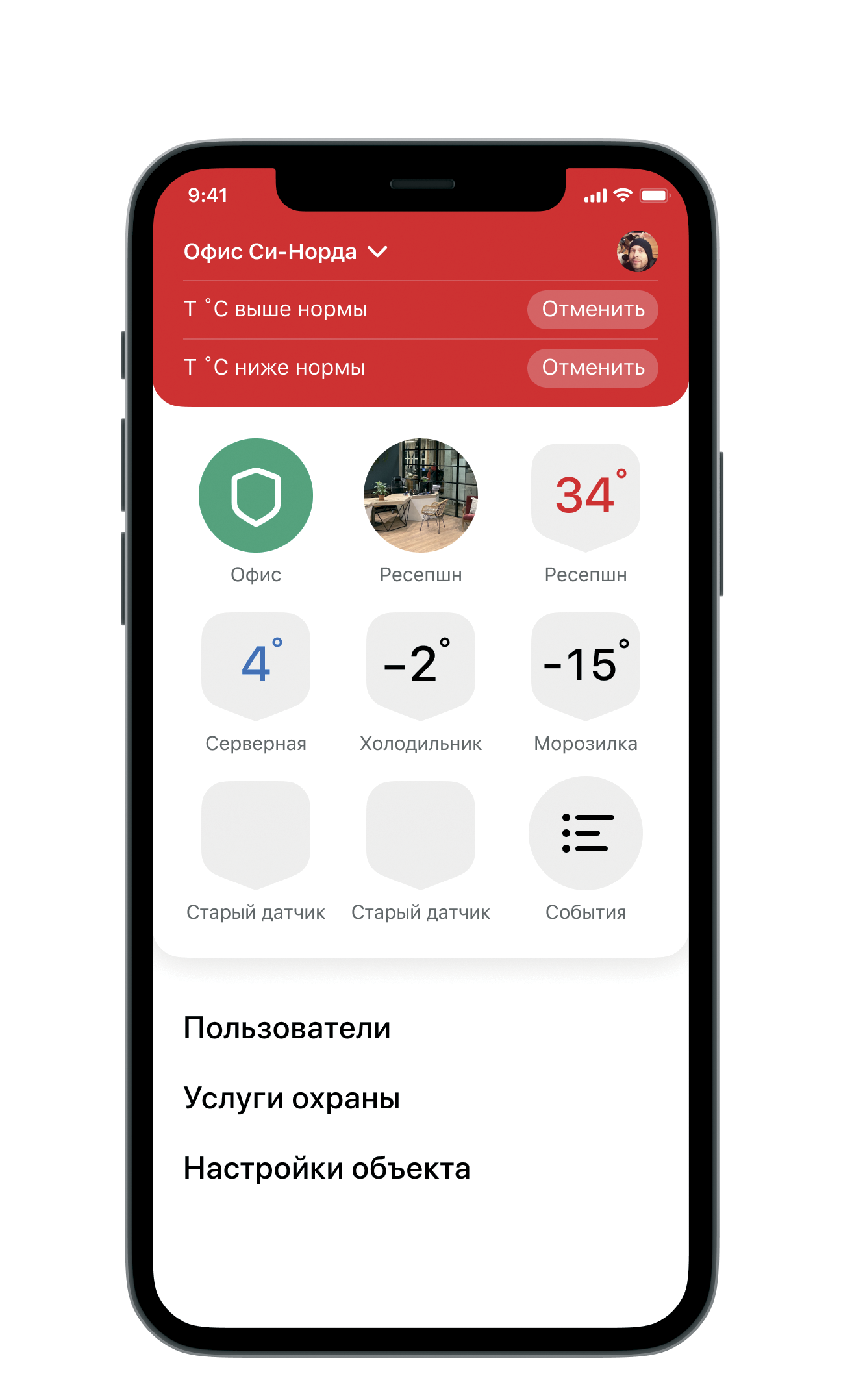 • Датчики постановки/снтия с охраны